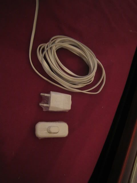 En cualquier ferretería, compré 4 metros de cable de doble hilo por 0.85 euros(mejor comprar 5 o 6), el interruptor por 1.04 y la clavija por 0.56, más los tornillos necesarios